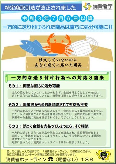 令和3年7月6日(火)以降は、注文していないのに届いたあなた宛ての商品について、