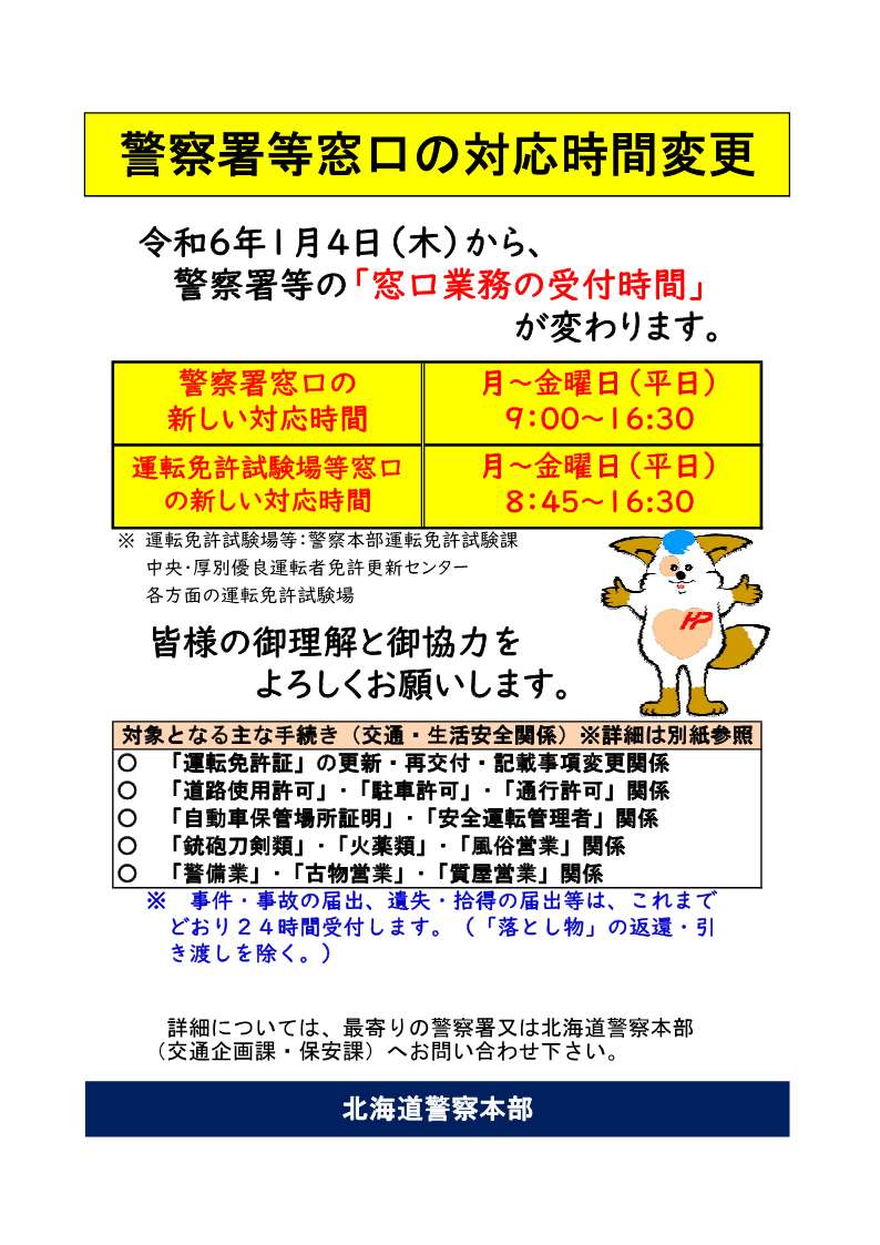令和6年1月4日(木)から警察署窓口の受付時間が変わります。