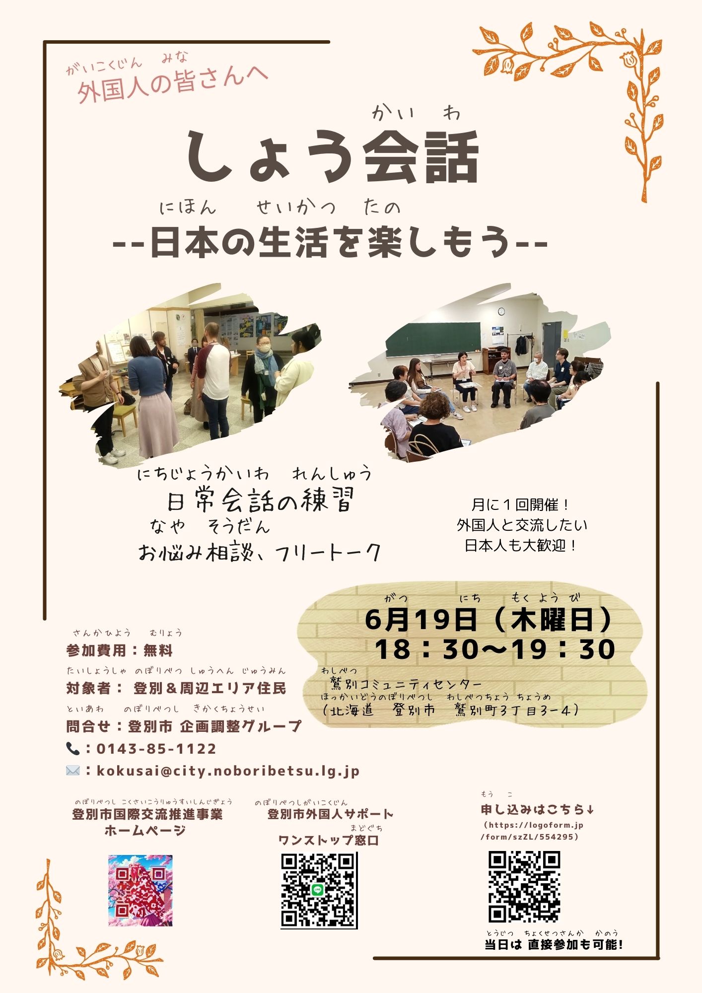 この機会に、登別にお住まいのさまざまな国の方と交流を深めてみませんか。
