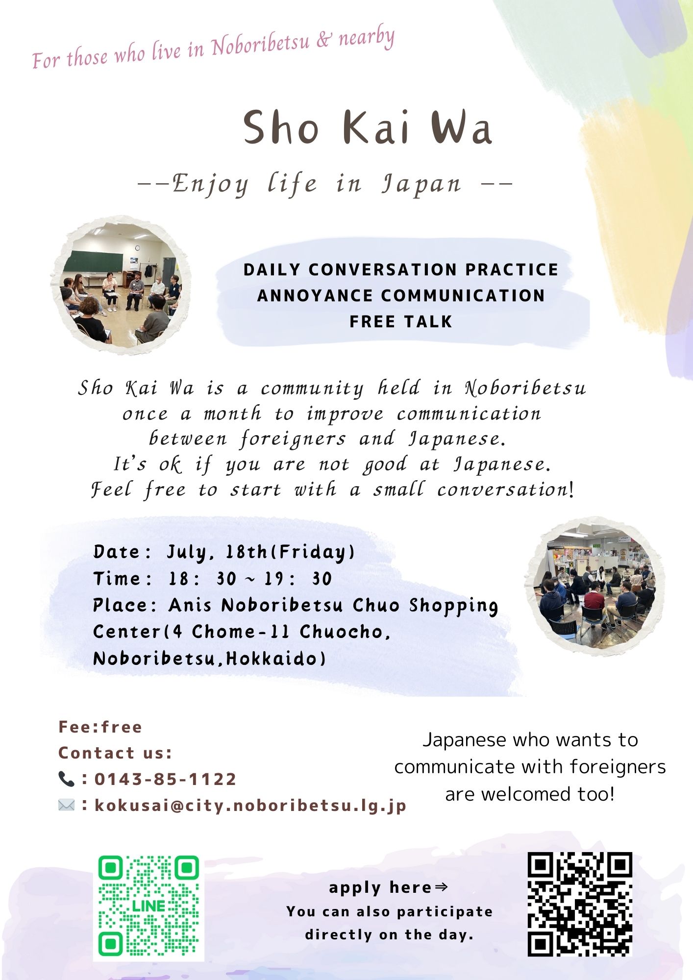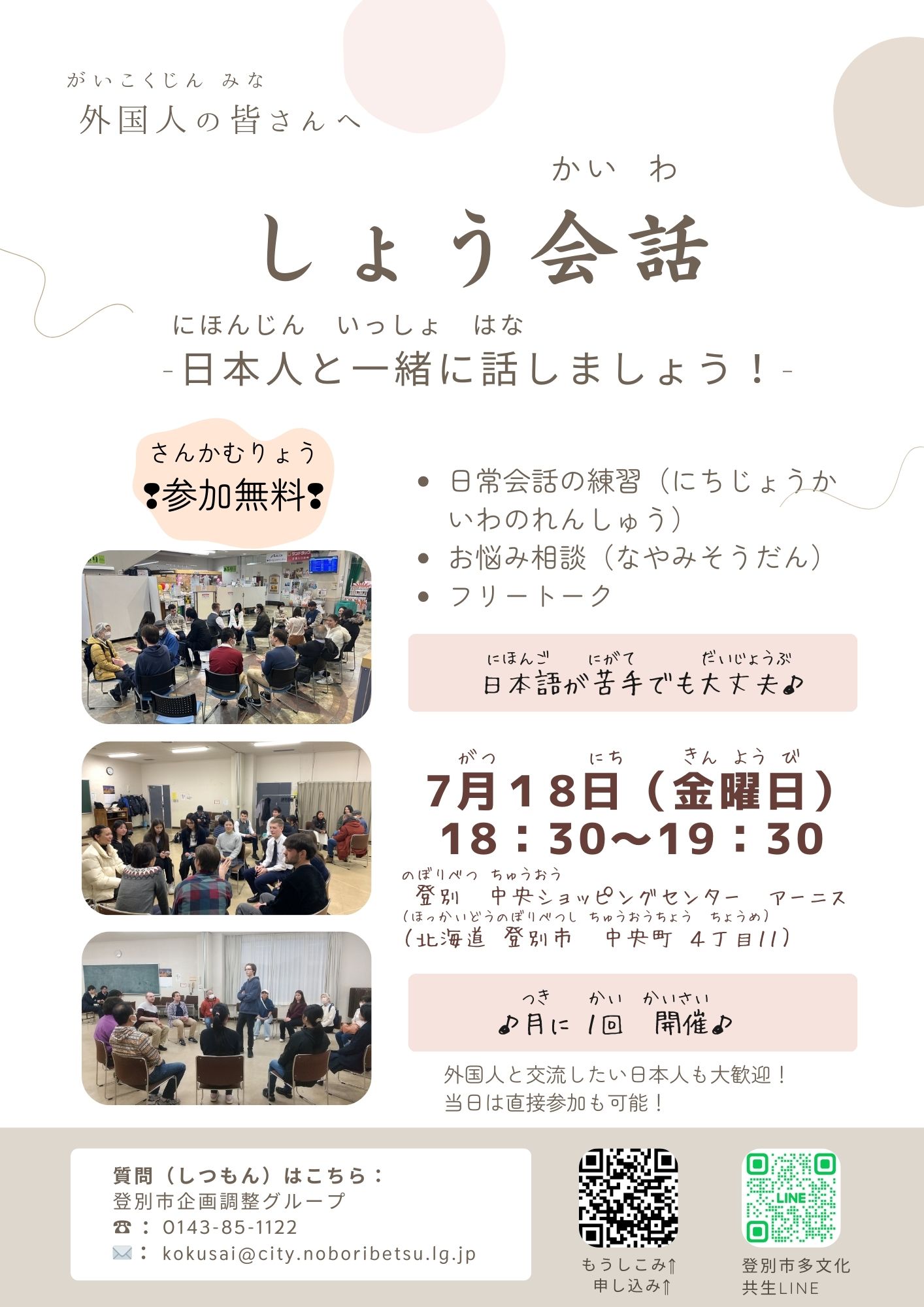 最新情報はこちらから(登別市多文化共生公式Lineより案内させていただきます)