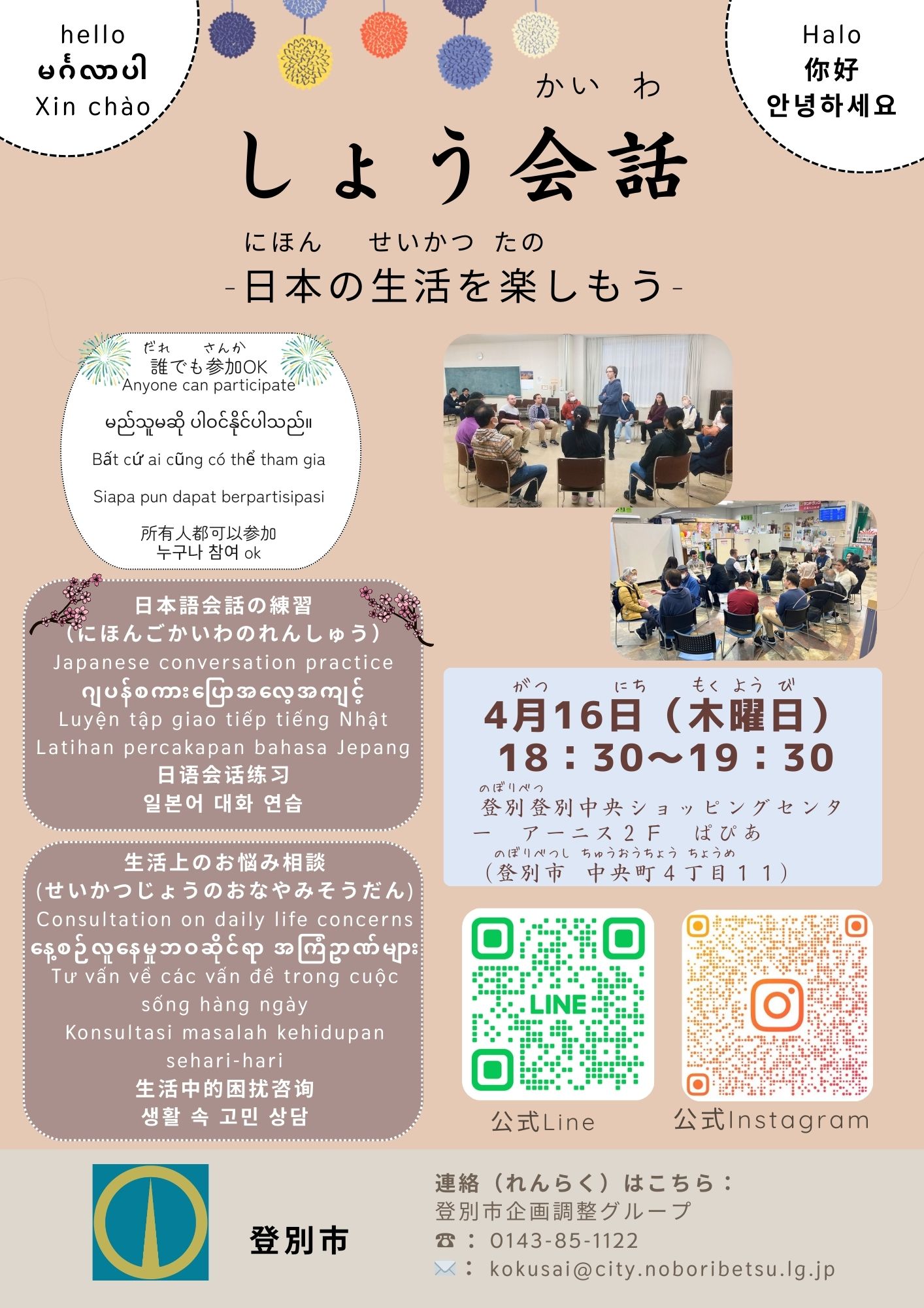 【4/16(木)】第24回しょう会話--日本の生活を楽しもう--を開催します