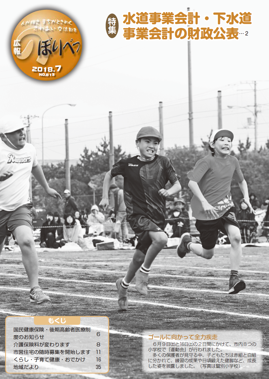 2~5ページ 水道事業会計・下水道事業会計の財政公表 6ページ 国民健康保険のお知らせ 7ページ 後期高齢者医療制度のお知らせ 8ページ 65歳以上の方の介護保険料が変わります 9ページ 情報公開制度による公文書の公開状況と個人情報保護制度の運用状況を公表します 10ページ ・知って備える防災メモ第66回 ~『大雨』がもたらす『災害』~ ・仲間たち ~富岸ジュニアキッカーズ~ |
