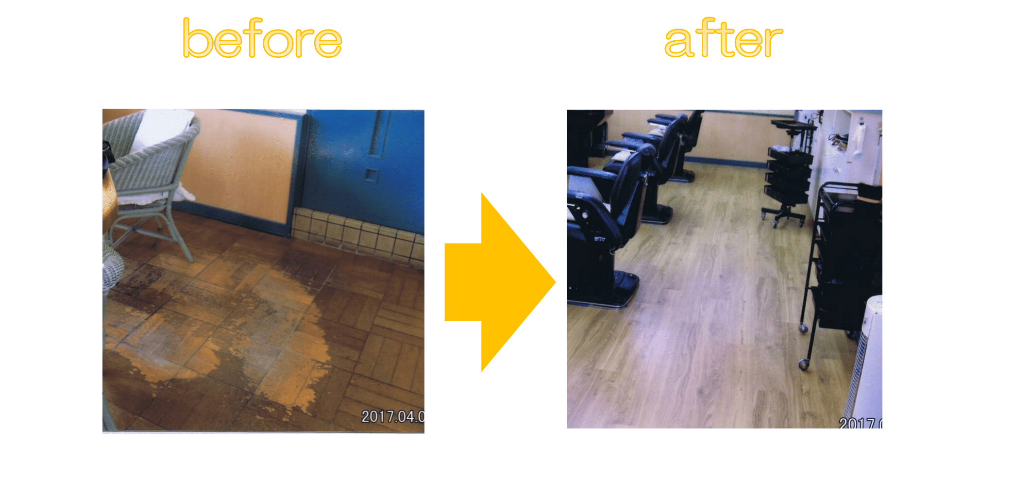 長年の使用により、床が黒ずみ、店内の雰囲気が古い印象となっていましたが、床の張替工事を行い、空間演出効果を高めるとともに、衛生的な店内印象をあたえることで、集客力の向上を図りました。