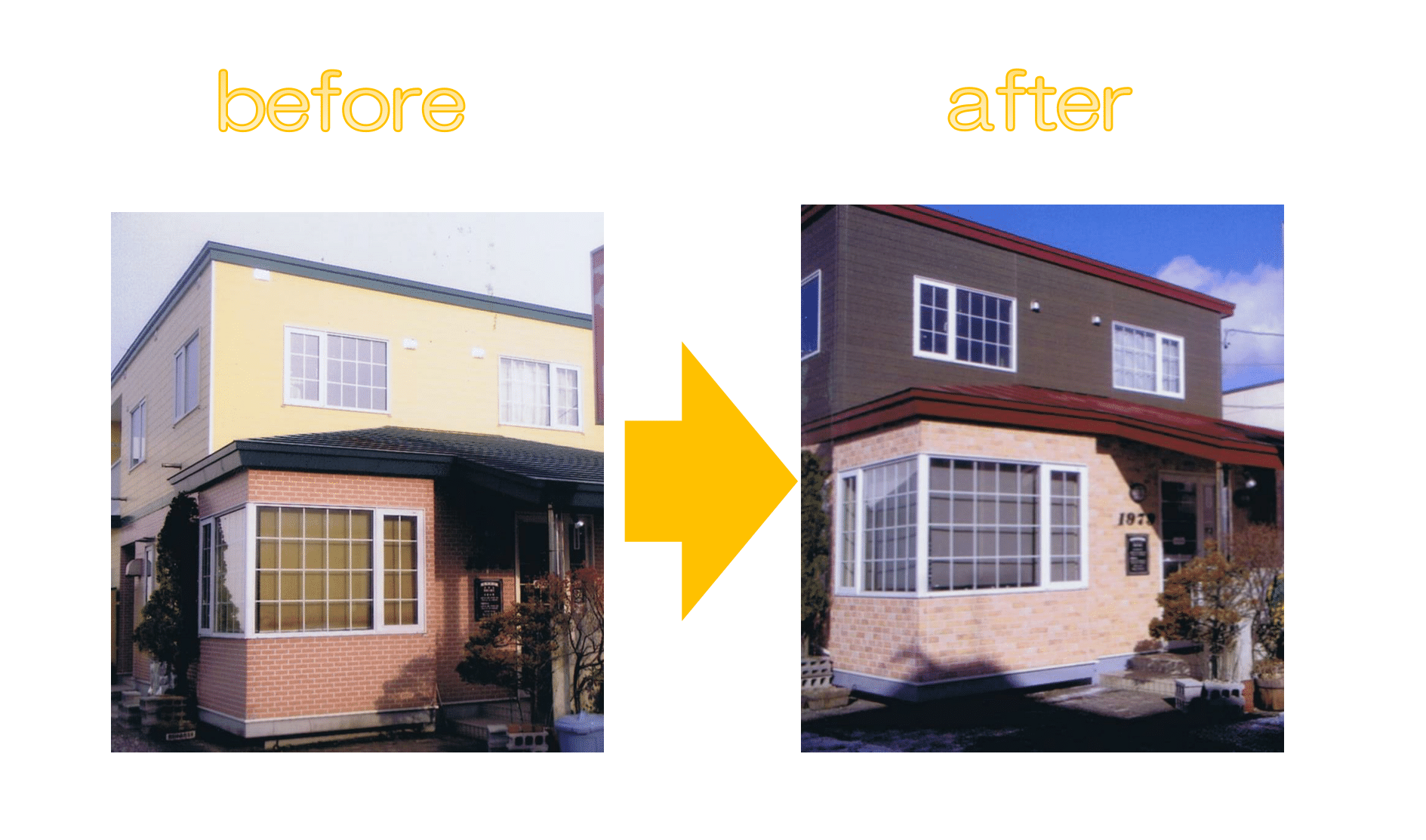 築年数が古く、屋根や看板のサビ、外壁の塗装の剥がれなどにより、古い店舗である印象が強く、来店しずらい店構えとなっていたことから、店舗の外壁等を全面的にリフォームし、衛生的で入りやすい店構えとすることで、集客力の向上を図りました。(店舗への集客力及び提供するサービスの向上に繋がらないと考えられる、単なる施設維持工事等は対象外となります。)