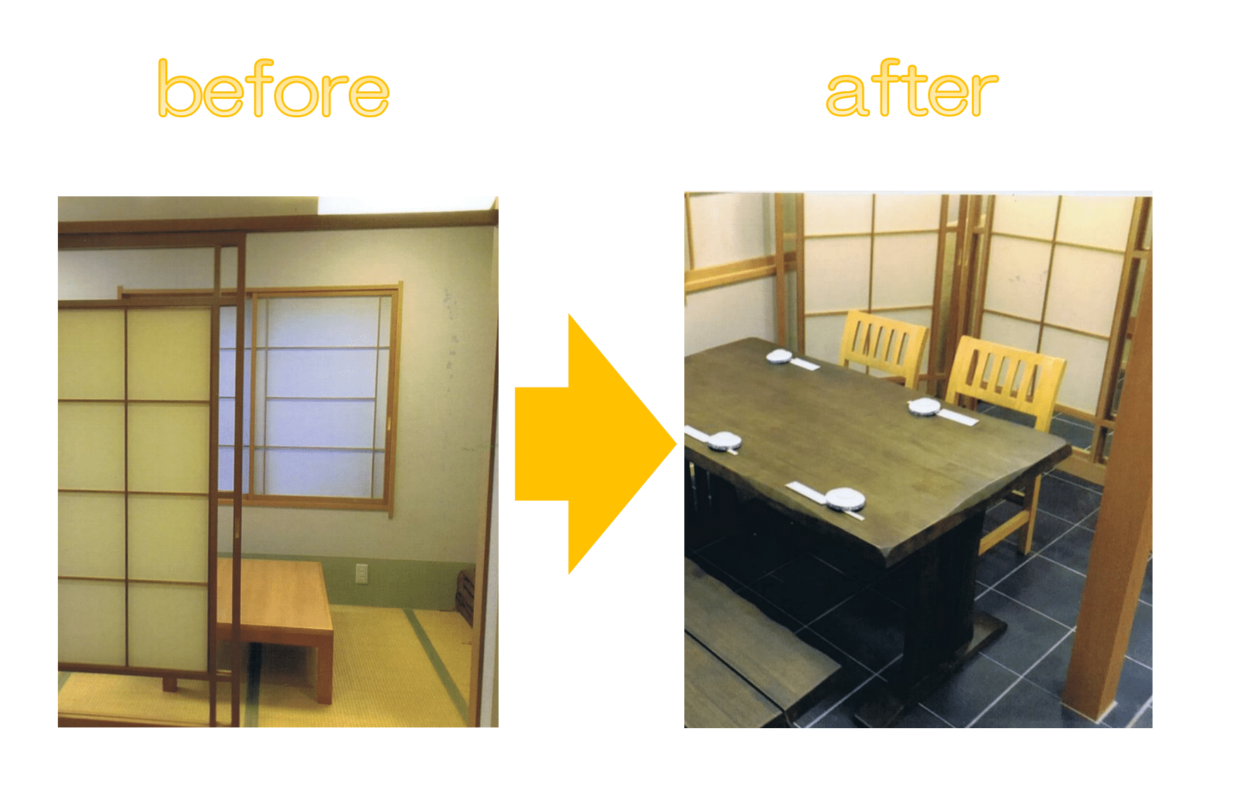 来店客より、テーブル席があると店舗を利用しやすいとの要望があったため、小上がり席の一部を撤去し、テーブル席を設置することで、高齢者や足腰の悪い方も利用しやすい店舗づくりを図りました。