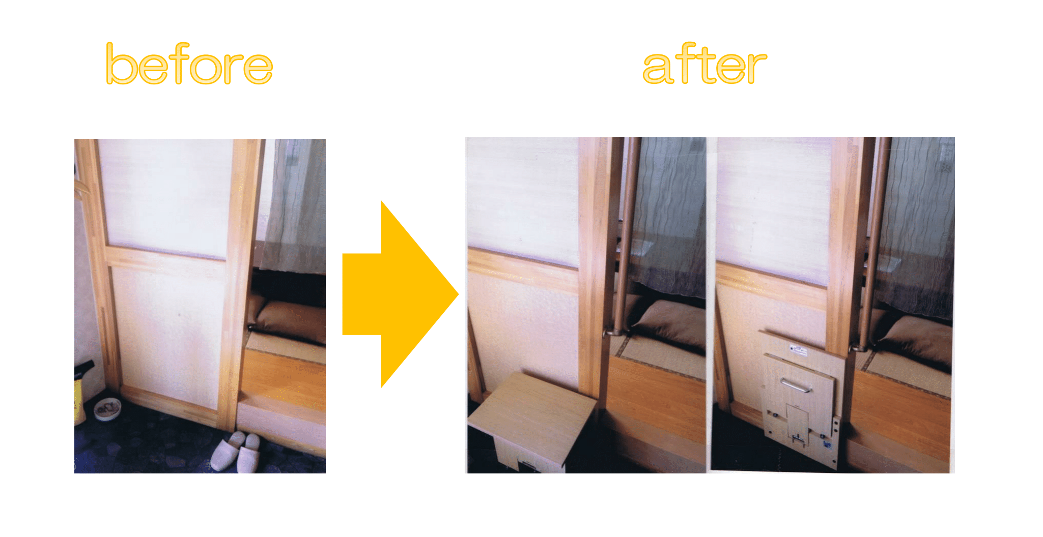 段差付近に手すりや靴を履く際の補助椅子の設置工事を行うことで、高齢者へのサービス向上や安全性の確保を図りました。