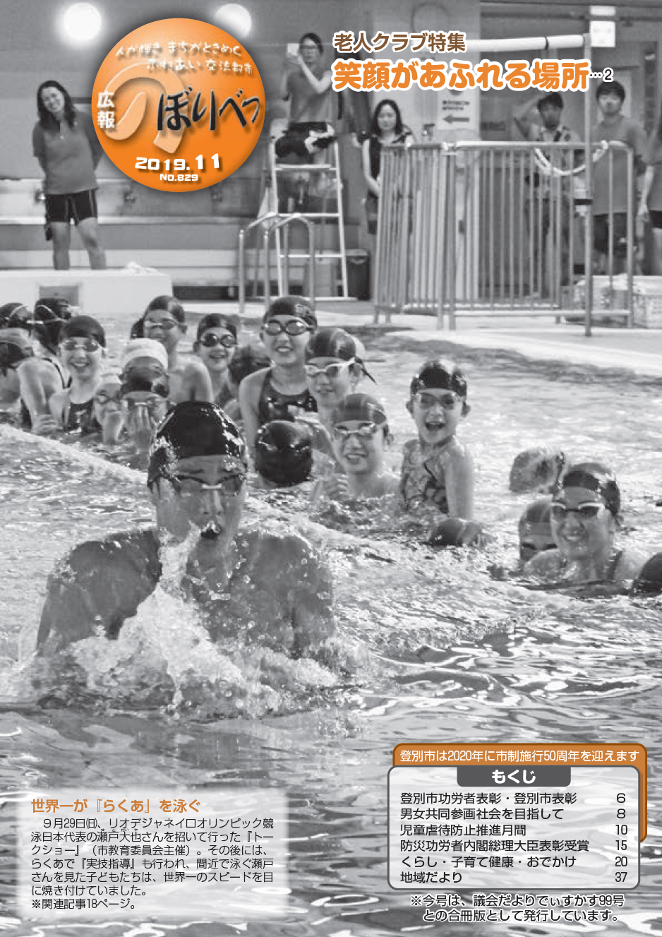 18・19ページ 東奔西走 ・世界で輝く至宝にふれる ~2020年登別市市制施行50周年記念 東京2020オリパラで夢を育むスポーツ推進事業瀬戸大也さんトークショー・実技指導~ ・質の良い睡眠のために ~ 2020年登別市市制施行50周年記念 東京2020オリンピック・パラリンピック 登別市ホストタウンプログラム『はつらつママリフレッシュ講座~秋コース~』×『A4Sプロジェクト』~ ・登別市の魅力を再発見 ~令和元年度市民見学会~ ・デンマークで学んだこと ~2020年登別市市制施行50周年記念 2019年度登別市デンマーク友好都市中学生派遣交流団帰国報告会~ ・暮らしやすいまちを目指して ~2020年登別市市制施行50周年記念 登別市協働のまちづくりセミナー~ ・心のバリアフリーを広げる ~第68回全道身体障害者福祉大会登別大会~ ・命の大切さを考える ~登別市『生きることを支えあう』自殺対策講演会~ |