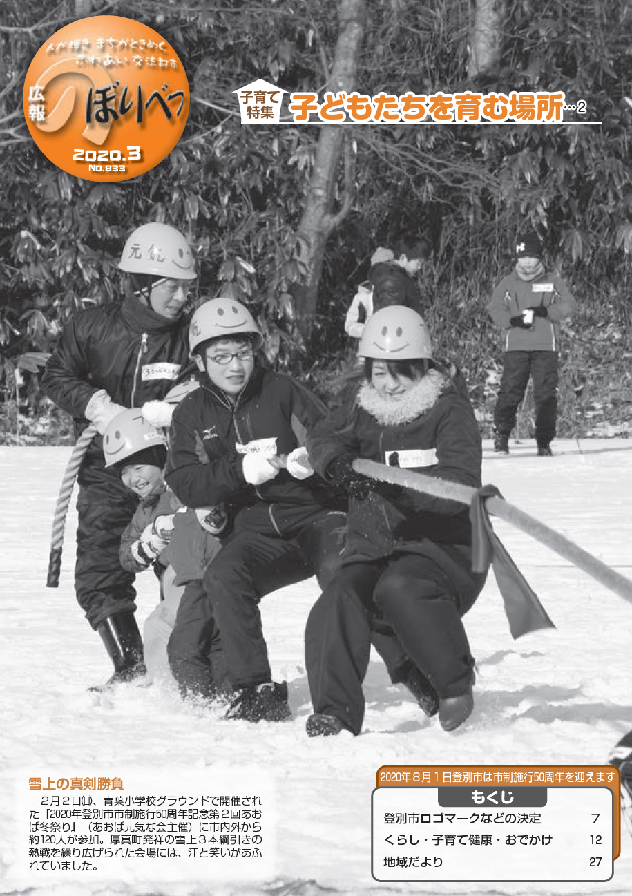 2~5ページ 子どもたちを育む場所 6ページ ・知って備える防災メモ第85回 ~命をつなぐ家庭内備蓄~ ・仲間たち ~すこやかグループ~ 7ページ 登別市のロゴマークなどを決定しました 8ページ 国民健康保険からのお知らせ 9ページ きらり ~西 泰斗さん(柏木町)~ |